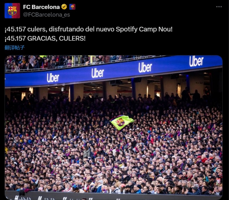 Barcelona chính thức công bố dữ liệu cho biết có tổng cộng 45.157 khán giả đã theo dõi trận đấu đầu tiên tại Camp Nou.